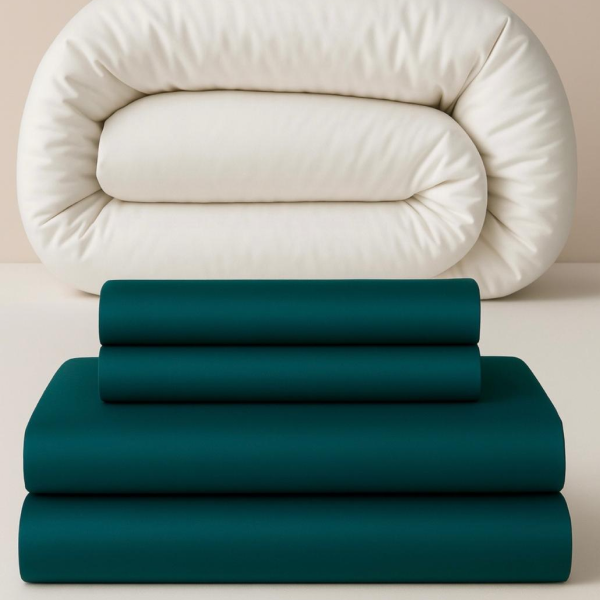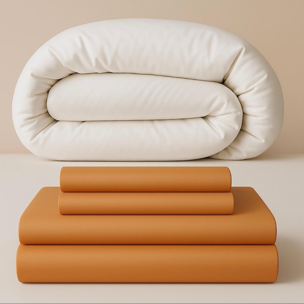 Single Duvet, Single Cover, 2× Pillow Case, Natural Cotton Draw String Bag